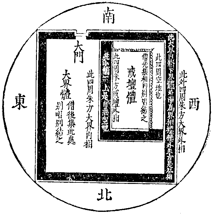 三正明說儀。此門布置,據律不具;今行事者,通取諸部,共成一法。而諸家安設,各有不同。今取普照,道安二師為本;餘則引律誠文,刪補取中(十種)。