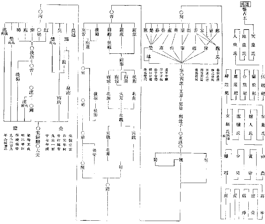 女媧氏 共工氏 大庭氏 柏皇氏 中皇氏 栗陸氏 驪連氏 赫胥氏 尊盧氏 混沌氏 昊英氏 朱襄氏 葛天氏 陰康氏 無懷氏