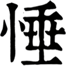 )從乙,乙音隱。經文因草書漸變為恐,訛也。下之業反。«爾雅»:懼也。«字書»:怕也。«说文»:從心聶也。經文作慴,非本字。聶音女獵反)。