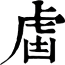 爪齒(上側狡反。«说文»:手足甲也,象形。下昌止反。«说文»:口齗骨也。象口齒形,止聲也。齗音銀)。