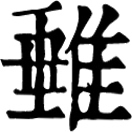 猥雜(襍)〔四四〕(上烏每反。«廣雅»:猥也。«考聲»云:不正而濫曰猥。«字書»云:猥,穢也。«蒼頡篇»云:猥,雜也。«说文»:衆犬吠也。從犬畏聲也。下才合反。«字書»:雜,和也。«考聲»:參也。«说文»:五釆相合也。從衣集聲也。案雜字正體從衣從集。隷書取便,移木於衣下作雜。又因草書變衣為立,遂相傳作雜,失之遠矣)。